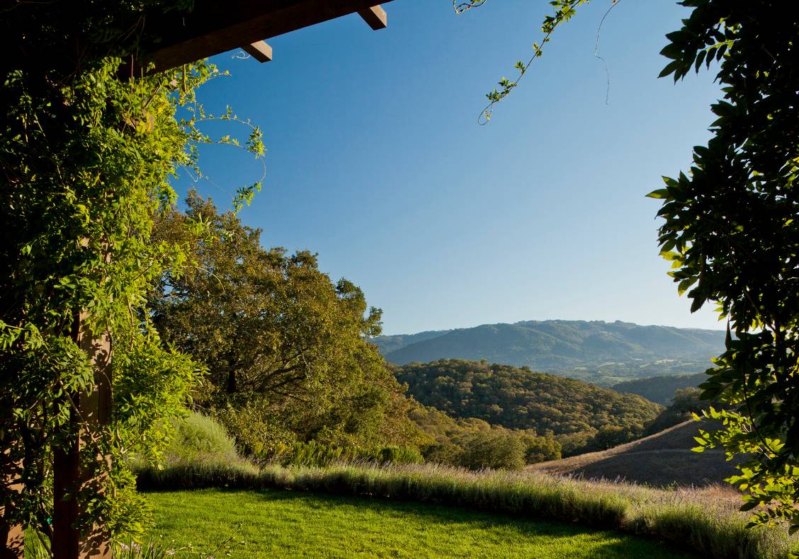 The clients asked for a house in which the verdant splendor of the Sonoma Valley would freely filter throughout the house. Thus the house has custom-designed wood doors that fully slide into the walls allowing the flow of views.